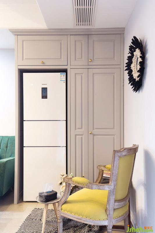 餐邊柜兼顧了冰箱的空間,灰色中和了客餐廳的色彩,給屋內(nèi)帶來(lái)了沉穩(wěn)的氣質(zhì)。從地到頂?shù)脑O(shè)計(jì),也為了增加更多的儲(chǔ)藏空間。