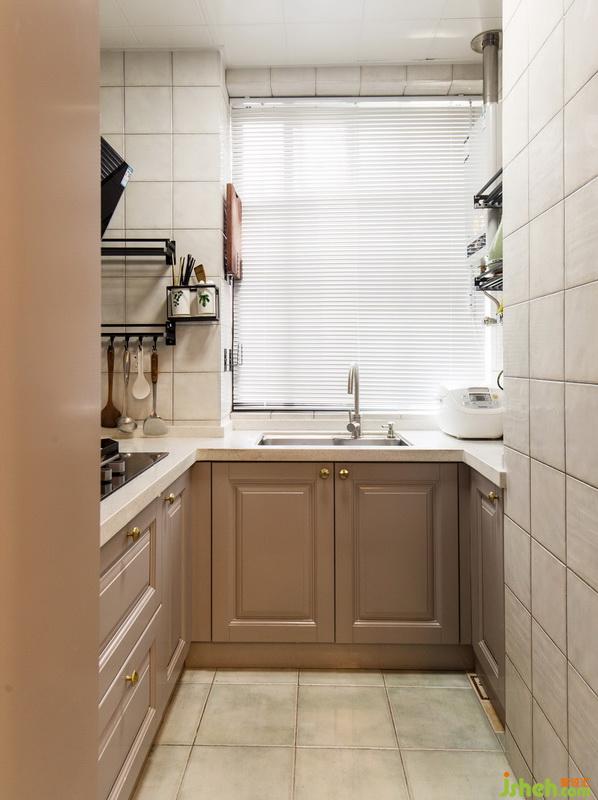 廚房采用了“U型”設(shè)計(jì),很適合小戶型的房子,雖然面積很小,卻可以最大限度的發(fā)揮其空間利用率?;铱У臋还衽渖辖鹕睦?,也有一種低調(diào)的時(shí)尚感。搭配的百葉窗,安裝、清潔和維修比較方便,有種清新的感覺。