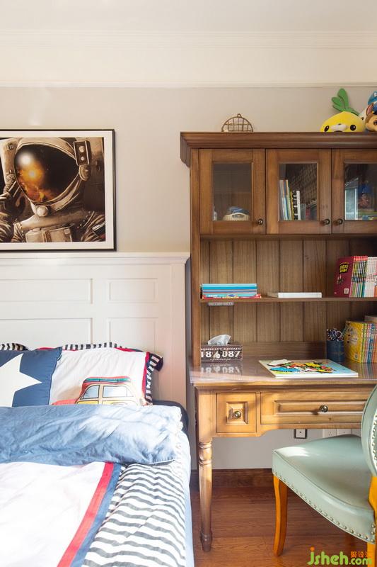 兒童房運(yùn)用原木色、白色和咖色的色調(diào)搭配,凸顯了居家的溫馨柔和,讓空間更顯自然舒適。宇航員的掛畫,給小朋友帶來(lái)了對(duì)宇宙的幻想,鼓勵(lì)一種探索精神。斑馬壁掛不僅點(diǎn)綴了墻面,也給房間帶來(lái)了童趣。