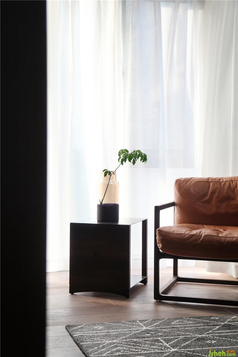 客廳一角搭配了一款單人扶手椅,實(shí)木與真皮的組合,既現(xiàn)代簡(jiǎn)潔,又自然質(zhì)樸。此處的窗戶(hù)雖然是朝西,但是窗外并沒(méi)有遮擋,午后的陽(yáng)光還是不錯(cuò)的,這個(gè)時(shí)間靠在椅子上小憩一下也是很愜意的。