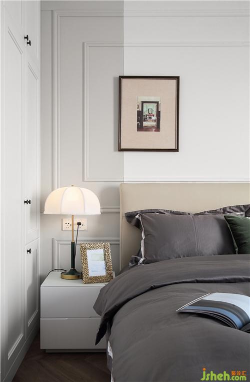 一抹綠的臺燈,造型別致有格調(diào);金色葉飾的相框,提升了屋內(nèi)的檔次,為整屋帶來滿滿的精致感。
