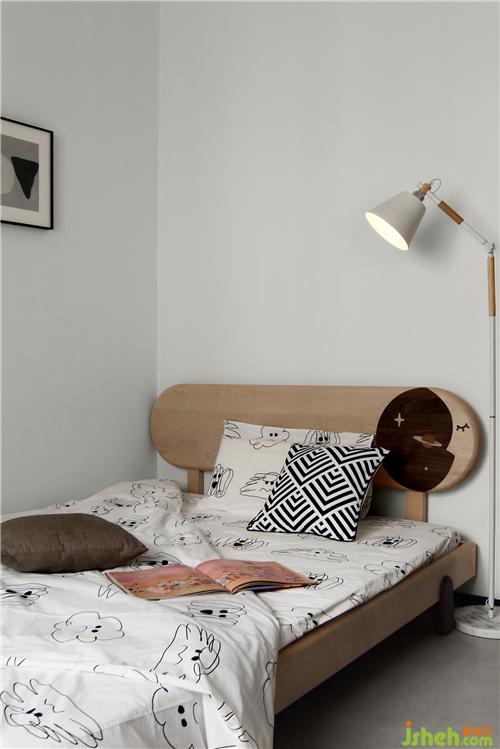 兒童床選購了一款帶有圓角床頭的實木床,保證環(huán)保性的同時也可防止孩子的磕碰,帶有卡通圖案,床腳也是輪子狀的,為兒童空間帶來了趣味性。木藝、金屬與大理石組合的落地?zé)?,簡約的設(shè)計給人一種寧靜平和的感覺,營造的不僅是光照的氛圍,更能讓人感受到與空間相呼應(yīng)所帶來的美感。