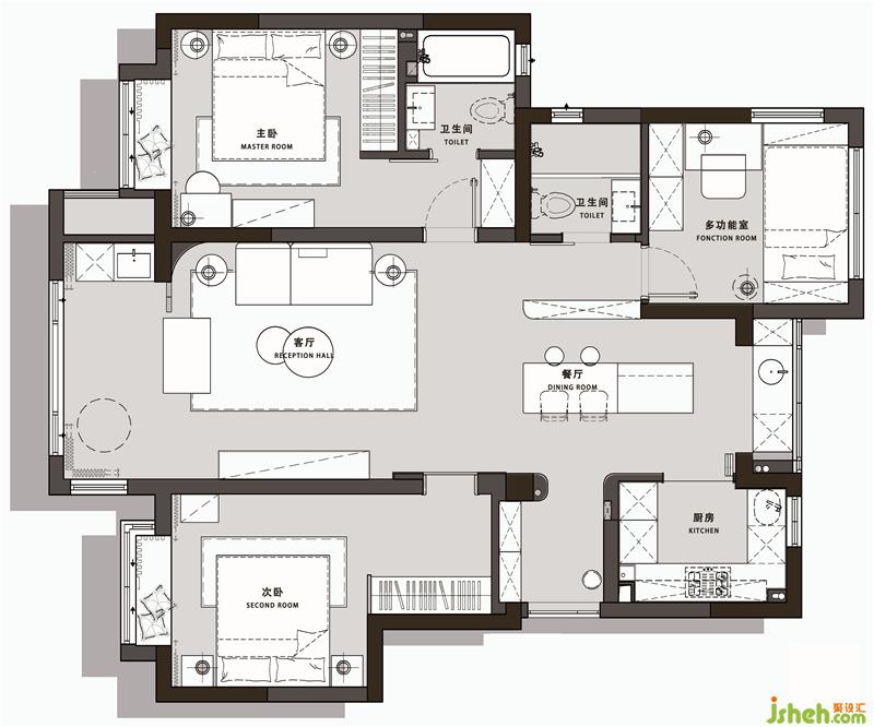 2. 衛(wèi)生間保留兩個,其中主衛(wèi)需要浴缸