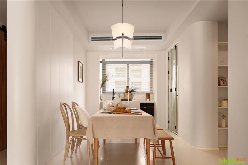 3. 餐廳與過道之間的墻體拆除,定制了儲物柜,增加餐廳空間的收納