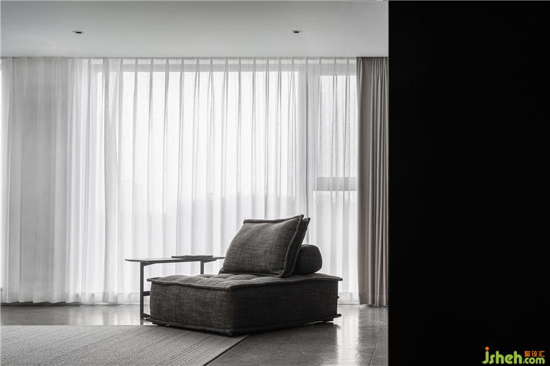客廳的沙發(fā)由三塊可移動(dòng)的單人沙發(fā)所組成,可隨心意擺放在任一角落,半躺的設(shè)計(jì)有助于壓力的釋放,在這寬廣的客廳空間中最適合不過(guò)了,灰色與米色的搭配也更顯高級(jí)感。地上鋪上一塊淺色的棉麻地毯,帶來(lái)一份溫潤(rùn)與清新。