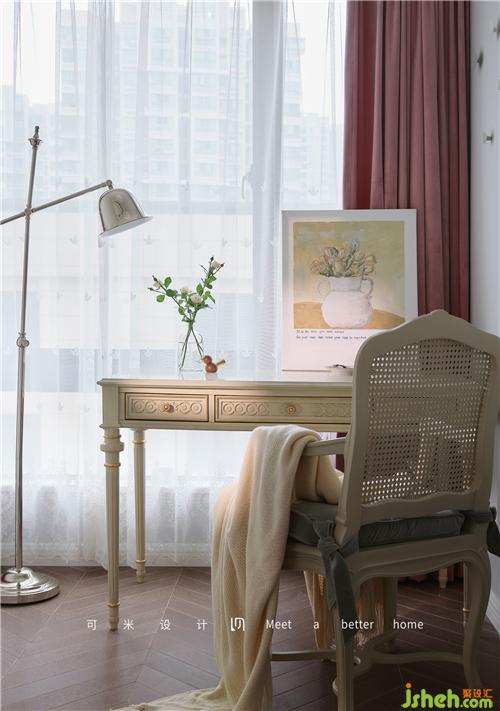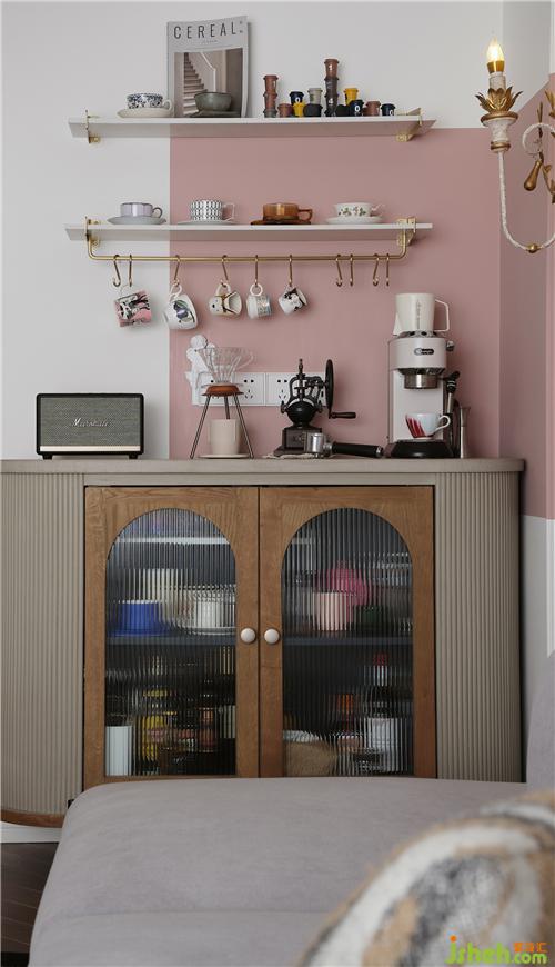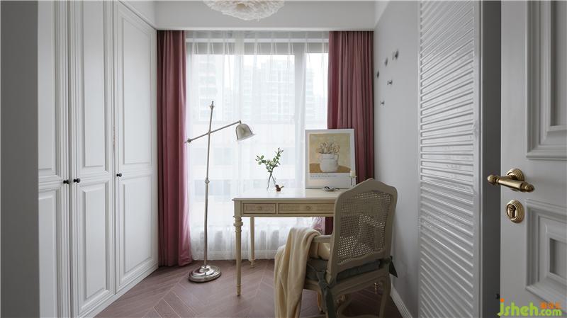 衣帽間,留白墻面搭配白色儲物柜,空間更顯輕盈明潤;配合上粉色的窗簾,整體更加干凈通透,散發(fā)優(yōu)雅氣質(zhì)。