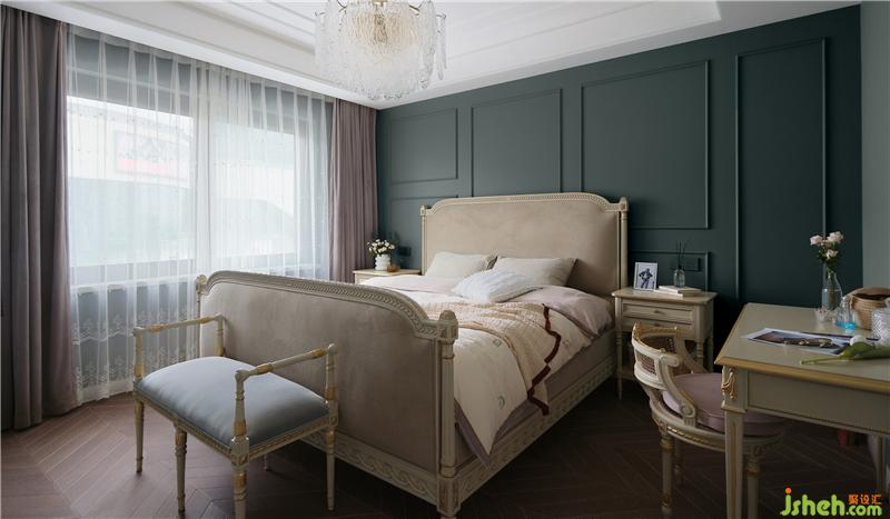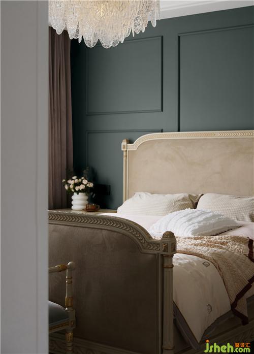 透過臥室,大膽的配色帶來了飄逸的儒雅感,灰綠色打破了空間的沉悶,使空間散發(fā)著高貴浪漫的氣息,完美展現(xiàn)屋主的精致感。