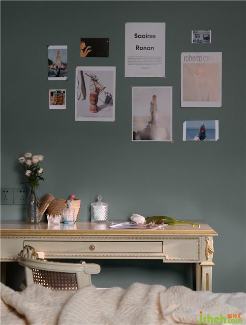 臥室一側(cè)購置了一款米色梳妝臺,時尚的外觀,巧妙的儲物空間,讓居室擁有意想不到的溫度與氣質(zhì)。墻上粘貼了diy海報照片墻,錯落有致,協(xié)調(diào)統(tǒng)一,時尚韻味十足。