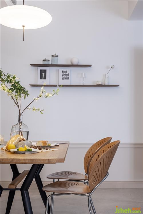 墻上分別安裝了40公分和90公分的置物擱板,簡潔優(yōu)雅的懸浮設(shè)計,成為家里一道亮麗的風(fēng)景,視覺上營造出輕盈感。