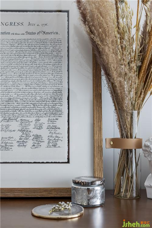 斗柜上裝飾些插花、精致擺件和復(fù)古畫(huà),帶來(lái)一絲復(fù)古的沉靜。