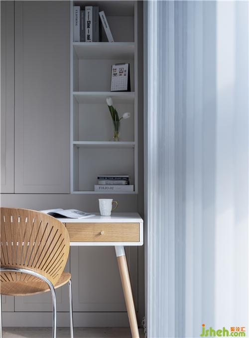 白色+原木色組合而成的書(shū)桌,在光線的映襯下,顯得格外的舒適自然。