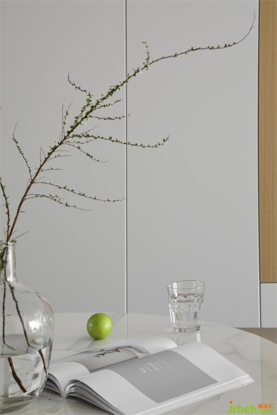雅致的白色巖板,帶有自然的紋理,煥活了空間的韻律。南京家居設(shè)計(jì)從玄關(guān)延伸過(guò)來(lái)的儲(chǔ)物柜,可以作為餐邊柜的補(bǔ)充;白色的柜子清爽而整潔,為空間帶來(lái)一份清新感。