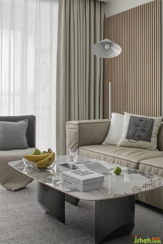 12mm的巖板茶幾,紋理自然清晰,凸顯了石材的肌理感;順滑的圓角處理,南京家居設(shè)計(jì)提升了家居的安全指數(shù),給客廳增添了一抹亮色。