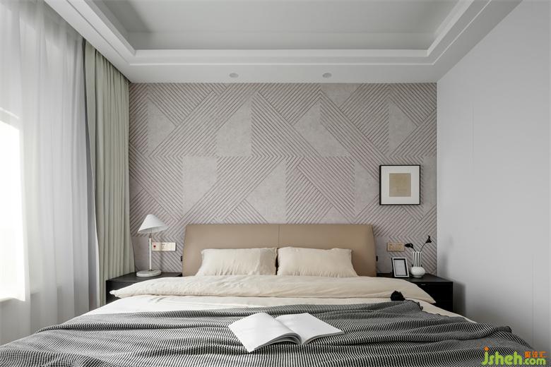 燕麥色的真皮床,純粹簡約,帶來一種素雅柔和的感覺,飽滿柔軟的靠感,南京家居設計讓倚靠更加舒心。床頭背景墻鋪貼了淺灰色的幾何狀墻布,無限延伸的線條,縱橫交錯,形成立體的視覺效果,理性的圖形及色塊營造出高級的質(zhì)感與氛圍。一幅裝飾畫點綴其中,帶來一份美好與品位。