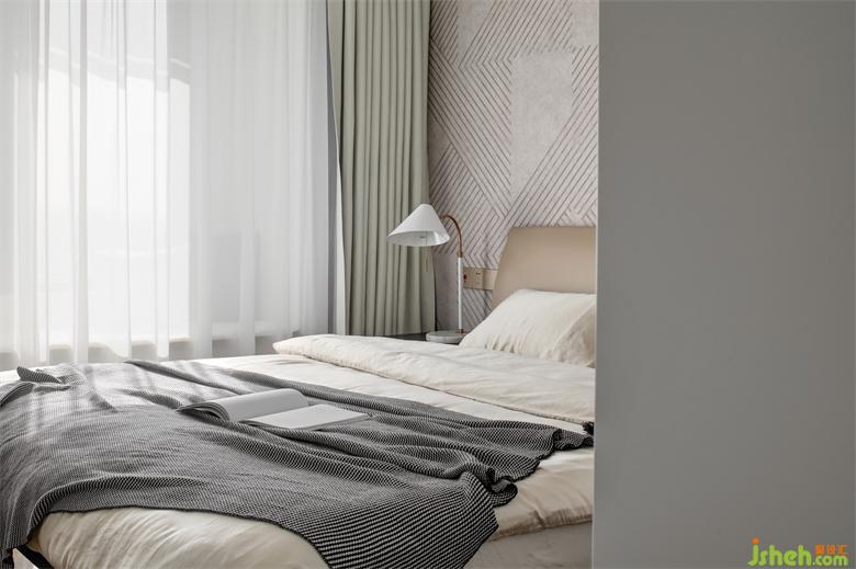 來到臥室,一款白色的臺燈映入眼簾,精致簡約的造型,搭配于淺色系的空間之中,豐富空間的視覺層次。米白色的床品,帶來一種放松無壓的氛圍,進入臥室就感受一份到溫暖寧靜。
