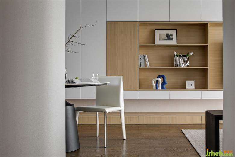 電視背景墻采用隱藏式柜體+展示柜+電視的組合設計,整面墻看起來更“整齊劃一”,封閉式的柜子內(nèi)可以存放一些比較散亂的東西,而開放格+底部鏤空位置就可以擺放裝飾品、書籍等,南京家居設計提升空間的藝術品味,適當?shù)拈_放式展示架又能增添層次感和輕盈感,給人一種靈活多變的空間效果。木色更好的融入白色之中,中和了空間帶來的疏離感,南京家居設計讓客廳多了一份溫潤柔和,有了家的包容性。