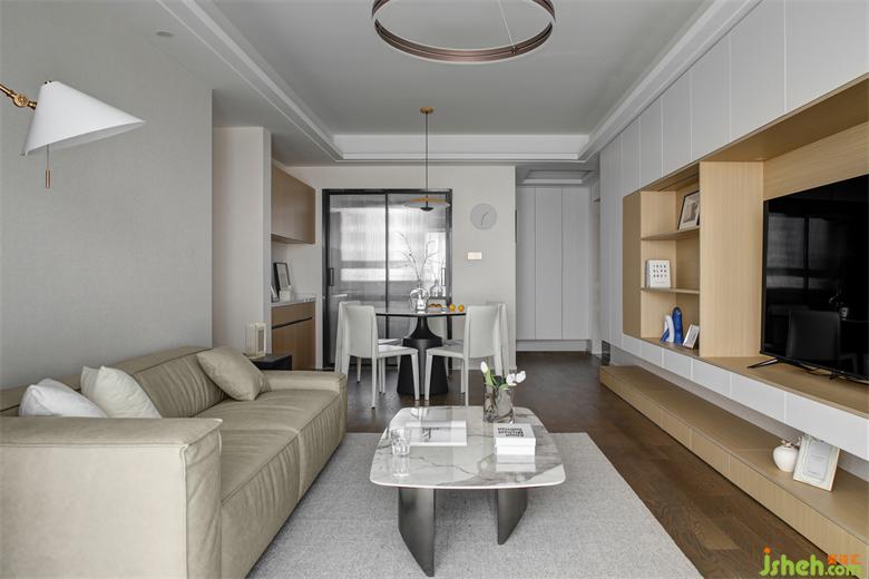 客廳與餐廳聯(lián)通,運用白色和木色營造的簡約空間,南京家居設計讓舒適與靜寧縈繞于整屋之中。