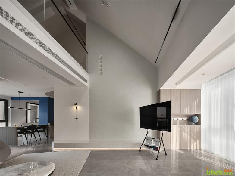 挑空的設計映入眼簾,視覺上更加開闊,簡約的既視感呼之欲出。