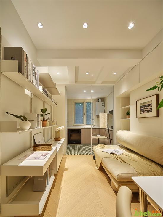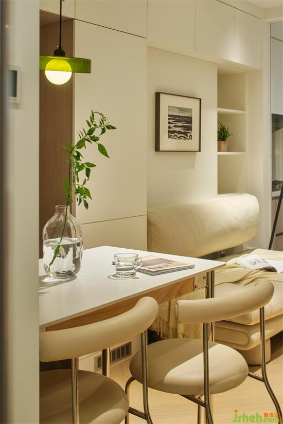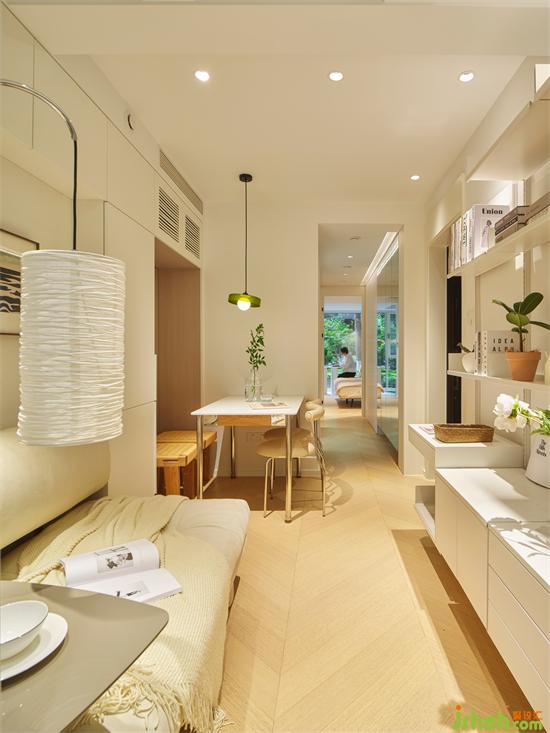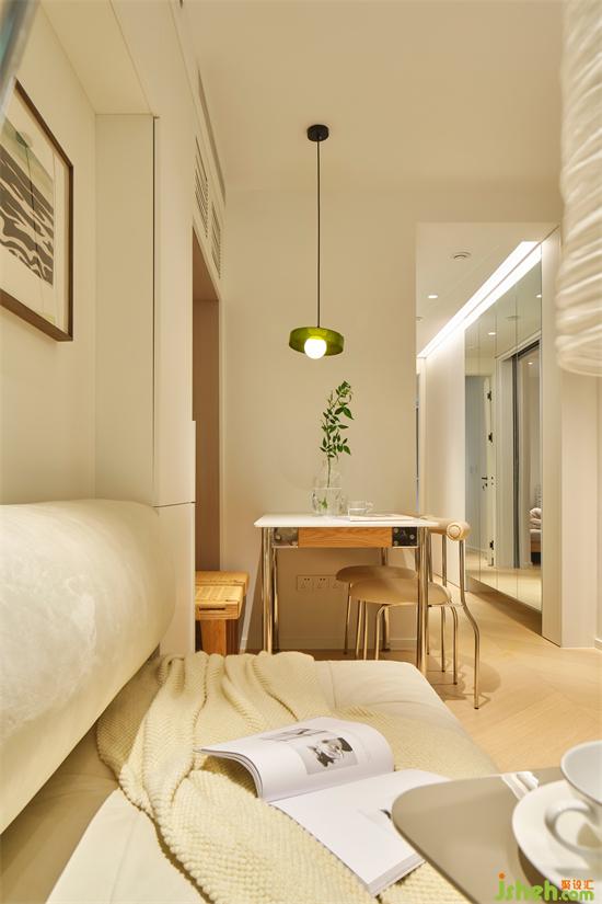 室內采用柔和的暖白色調,結合質樸的木質元素,創(chuàng)造了一個小而精、小而美、小而實的簡潔空間。