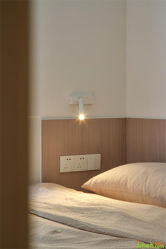 床頭背景墻用木飾面作為裝飾,自然舒適的木質(zhì),南京銀城聚錦園家裝設(shè)計(jì)也能讓空間顯得更加溫馨舒暢,搭配無(wú)靠背床,讓睡眠氛圍更加輕松愜意。