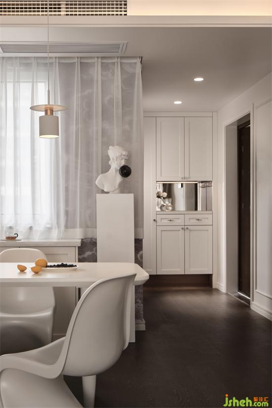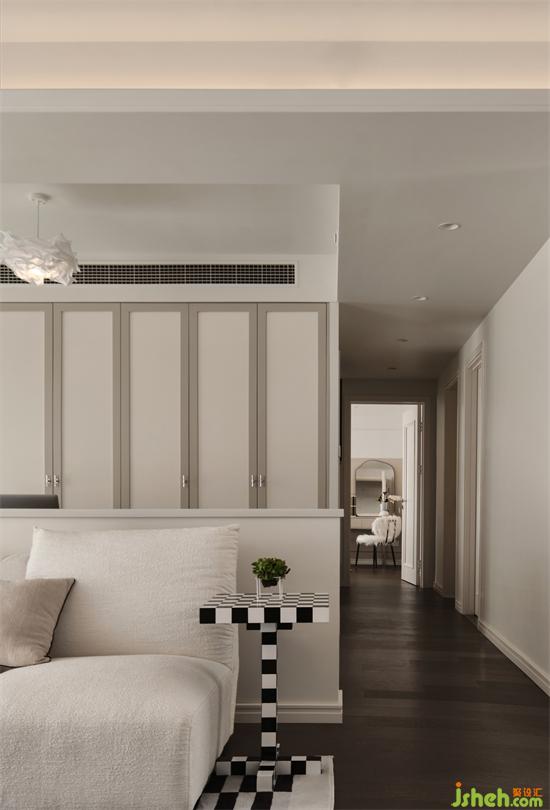 精細的設計,柔和的邊角處理,溫柔細膩的觸感,大面積的奶白色,南京世茂璀璨江山精裝房改造利用軟裝的搭配為空間注入亮色調,釋放出空間的舒適性和親密感;家裝設計運用開放式的視覺藝術,讓空間的居住感更溫暖。