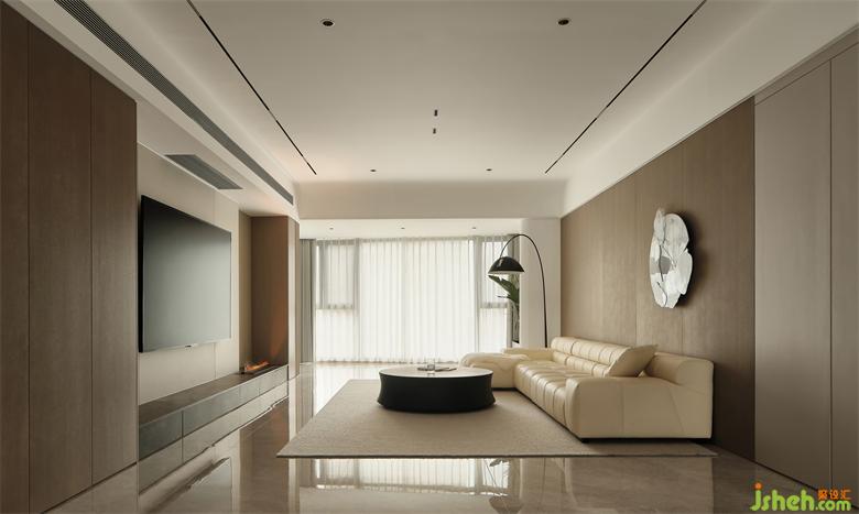 一面超大落地窗的開闊,收錄一年四季的光影流轉(zhuǎn),滿足視覺尊享;以暖灰色+咖色為主調(diào),呈露出本真樸實(shí)又不乏清雅的審美感受。