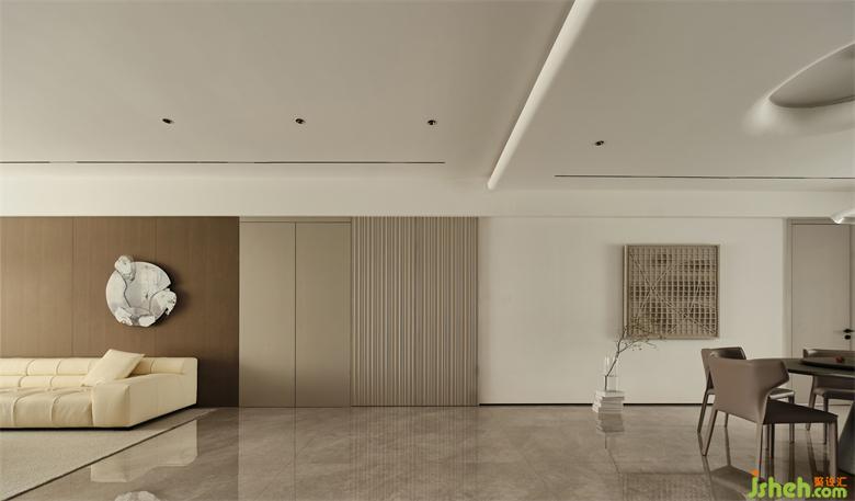 南京藏龍御景家裝設(shè)計(jì)開放的空間布局,簡約克制的美學(xué),顯現(xiàn)空間的寧靜與包容性。