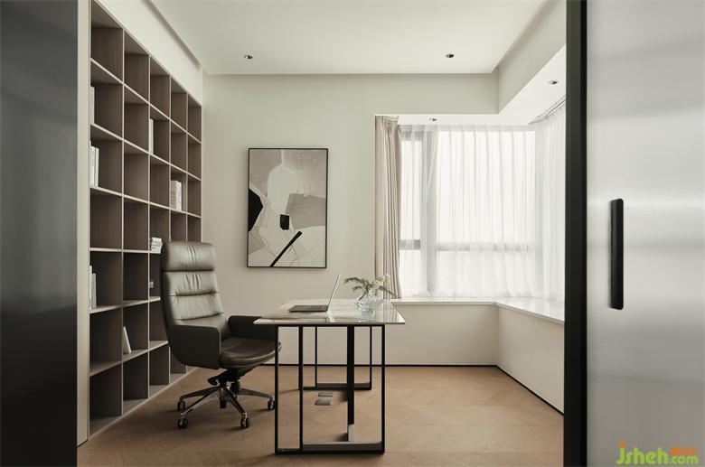 從主臥可進入書房,獨立的空間安靜不受干擾,L型的飄窗賦予室內(nèi)更多采光。