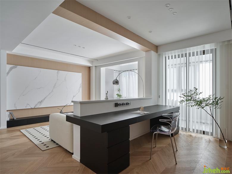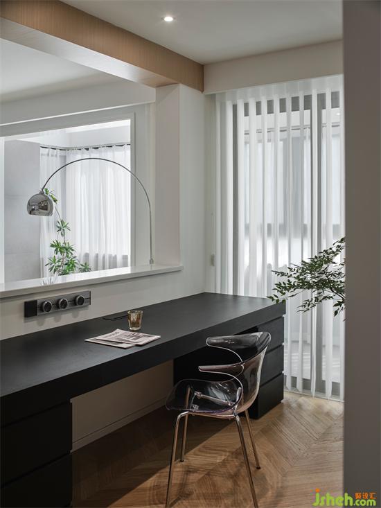 開放式書房的設(shè)計,與客餐廳形成環(huán)游動線,各空間交流無障礙,南京瓏玥名邸精裝房改造賦予空間通透感。書房與陽臺之間搭配了夢幻簾,輕柔飄逸的薄紗材質(zhì),柔和過濾強烈的太陽光,兼具美觀雅致和確保私密于一身,營造靜謐的工作學習氛圍。工作區(qū)背面沿墻體定制一排儲物柜,可以將一些小物品和雜物放在這里,保持空間的整齊劃一,原木色顯得自然溫潤,帶來一份溫馨舒適。