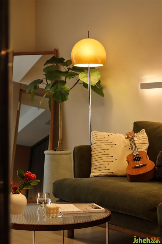 選了一款落地燈置于沙發(fā)旁,簡潔的燈體線條,圓潤帶有漸變色的燈罩,簡約與復古的結(jié)合,按下開關的一刻,燈具散發(fā)出溫暖的光線,兩人依偎在沙發(fā)上,一人彈著吉他,一人靜靜聆聽,享受這屬于自己的放松時刻。