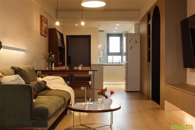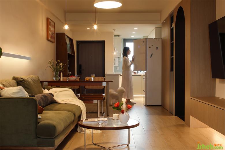 客、餐廳之間自然過渡,沒有做特別的分隔,整體變得更加開闊和通透?;榉吭O計對整體顯示效果的細致考慮,既保證了空間和視覺的和諧統(tǒng)一,也讓屋主擁有更舒適的家居生活。