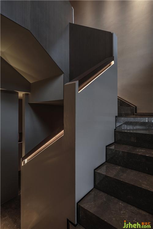 扶梯在一個約10㎡的空間中以緊湊的折線完成了一個“回”字攀升,于是,在旋轉(zhuǎn)而上的過程中,“打開、收緊、打開”的空間節(jié)奏能夠被明確捕捉,繁瑣裝飾被摒棄,空間回歸質(zhì)樸。