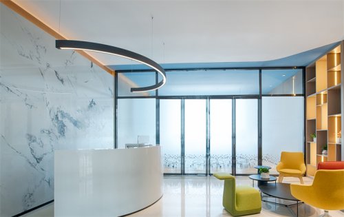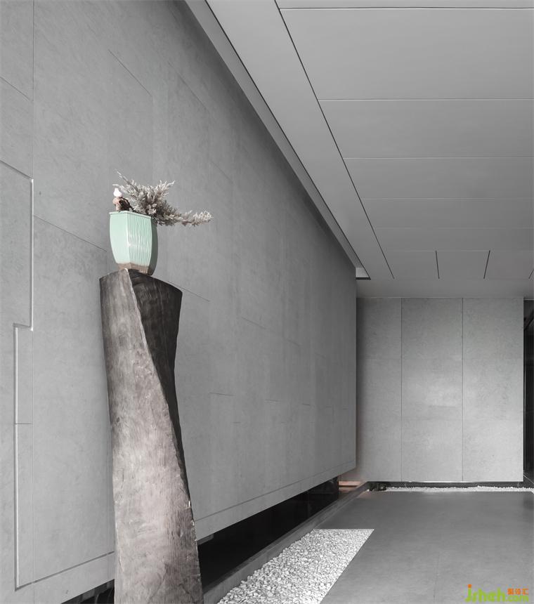 一面是熙熙攘攘的繁華都市,另一面是小橋流水。懷有“心有猛虎,細嗅薔薇”精神追求,是我們作為設(shè)計師必備的工匠態(tài)度?!八五e?,山島竦峙”的寓意,盆栽與枯木藝術(shù)、辦公室設(shè)計潺潺的水流聲襯托出都市中的原生態(tài)美,也就是我們所謂的相對極簡主義、禪宗意境的體現(xiàn)。