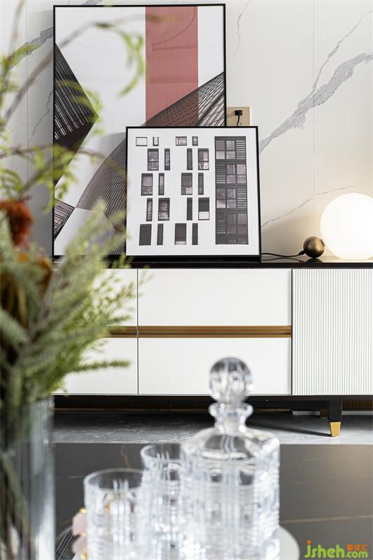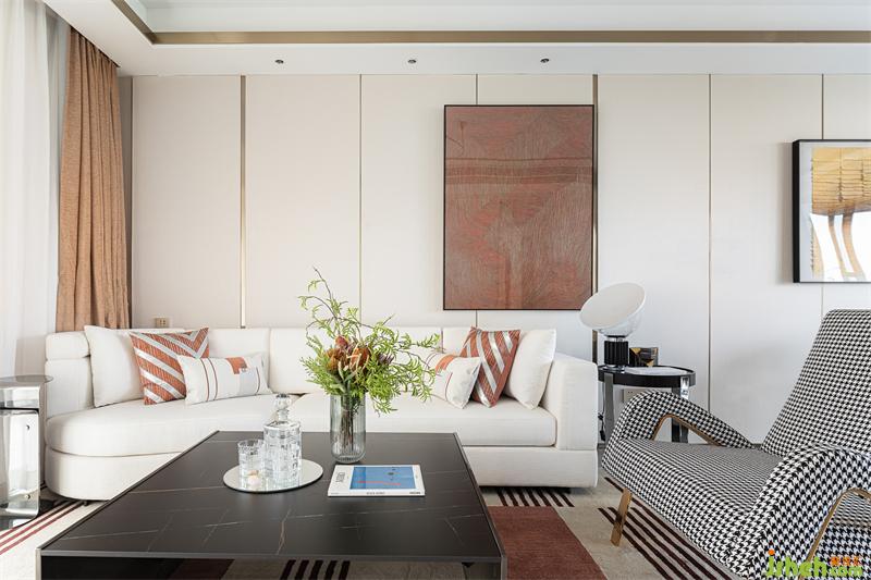 走進(jìn)B1戶型這個空間,盡管高級灰、大理石、米白色,潔凈卻略顯清冷,但暖橘色的加入為空間注入了活力與溫馨,配合墻面裝飾畫維持了空間的視覺平衡