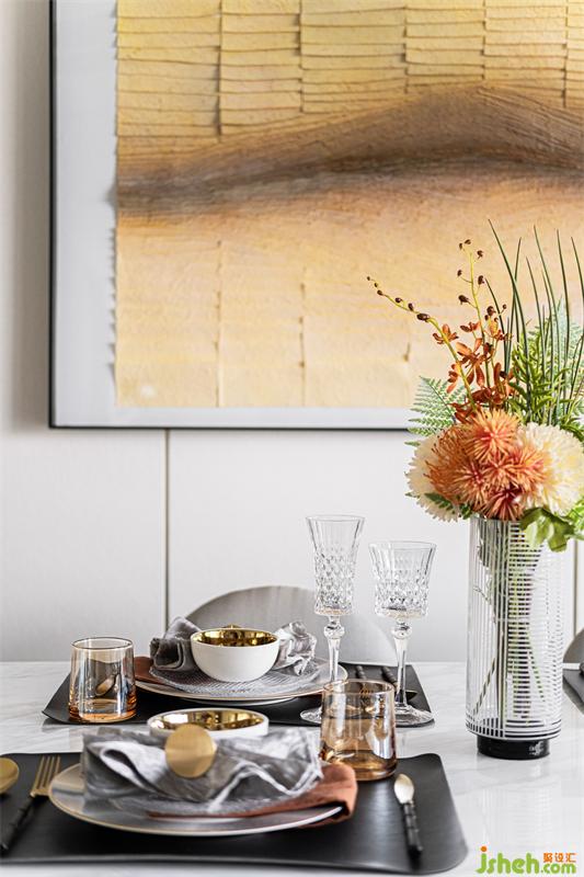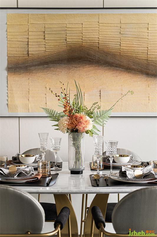 典雅的高級灰調(diào)中加入體現(xiàn)都市輕奢感的水晶和金屬色作為點(diǎn)綴,空間追求品質(zhì),舒適與放松的氛圍,材質(zhì)與植物綠色的自然氣息,更得以體現(xiàn)放松,愜意的現(xiàn)代生活方式。我們對細(xì)節(jié)的考量貫穿著空間的始終,每一件珍藏都儀式感滿滿,讓就餐成為空間畫面中美好的情緒所在。