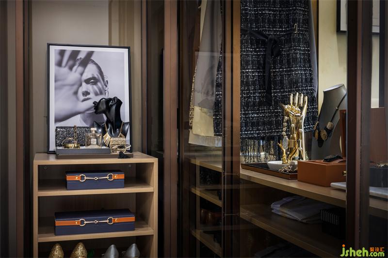 書房是男主人生活方式和精神意識的映射,書柜里放著主人收藏的相機與拍攝作品,時光在流逝,光將四季的變幻引入書房,裝點生活,創(chuàng)造平靜自然的氛圍,讓居者更好的專注當下,樣板房設計以安靜而有力的方式來進行創(chuàng)作,用相機來記錄生活的美好時刻。