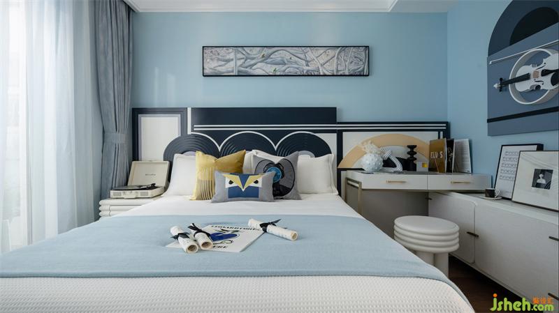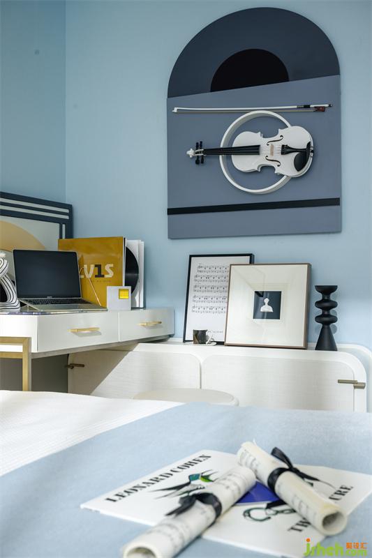 兒童房融入了音樂的主題,動物的元素使空間兼具趣味性。以孩童視角里的趣味界定空間的格調(diào),在粉藍色調(diào)、音樂形式與動物元素中打造一個充滿童真的藝術(shù)世界。