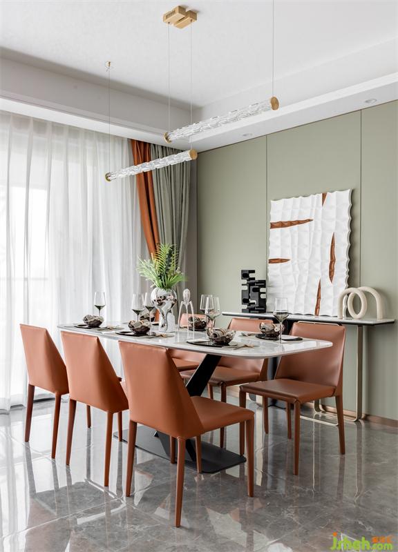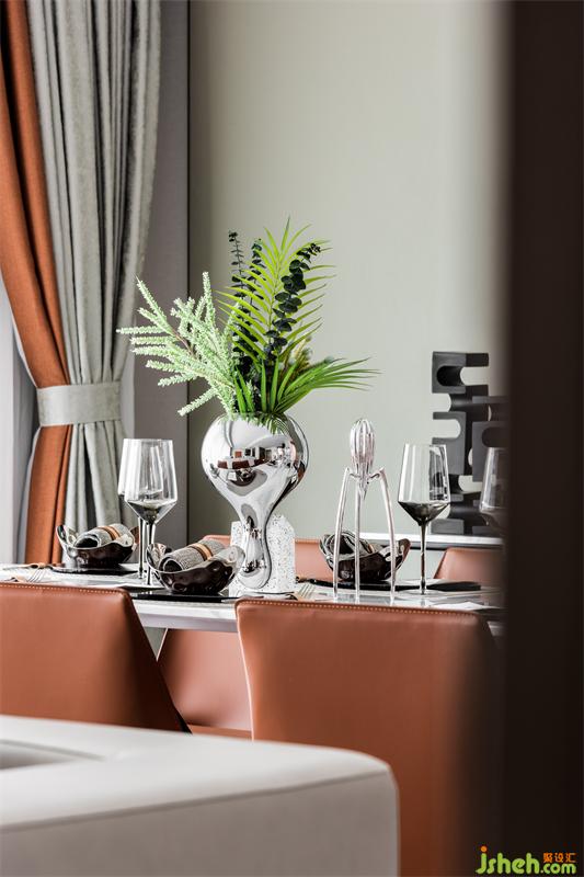 元氣滿滿的一天從媽媽的早餐開始,晚間奶奶與媽媽為家人精心準(zhǔn)備豐盛的晚餐,一起享受美食。餐廳家具的用料與細(xì)節(jié)設(shè)計無不強調(diào)著居住成員對生活品質(zhì)的要求與品位,皮革,金屬的巧妙搭配,與大理石在經(jīng)典橙色的映襯下更加凸顯質(zhì)感。
