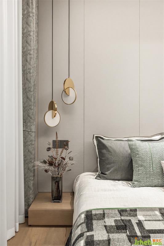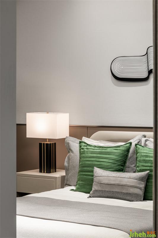 主臥延續(xù)著空間整體的調(diào)性,沉靜的色調(diào)、簡約的線條,在對比與融合中,展現(xiàn)出生活感與自然美。大大的落地墻飾搭配黑色精致的床頭燈,從容坦然,大氣優(yōu)雅,代表了有情緒、有驚喜、有平靜、有起伏的生活氣息,慰藉著每個熱愛生活的靈魂。飄窗盛滿陽光,把戶外帶進室內(nèi),是流行也是經(jīng)典。
