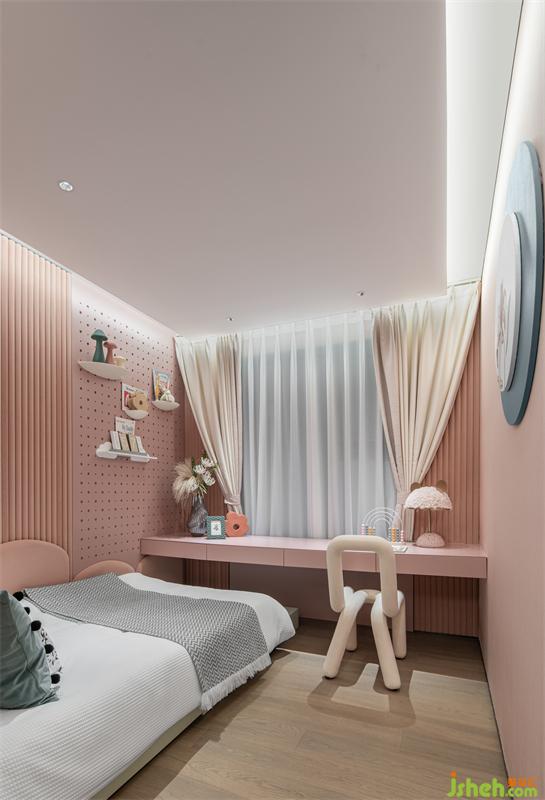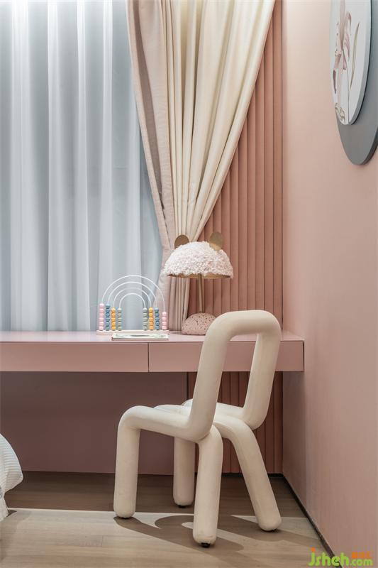 契合孩童的天性,我們將女兒房打造成純凈且充滿想象的唯美空間。整體色調(diào)簡約溫和,粉色和灰色的搭配,給人以典雅柔美、清新恬適的感覺。色彩豐富立體的裝飾畫、精致的擺件、可愛別致的臺燈,打開了對于空間的想象力,滿足了女兒浪漫的“公主夢”。