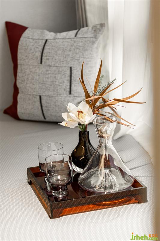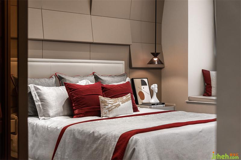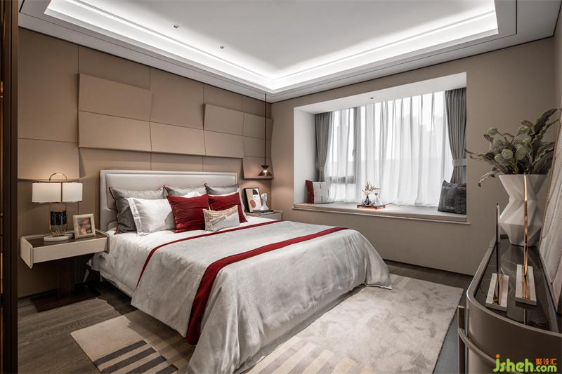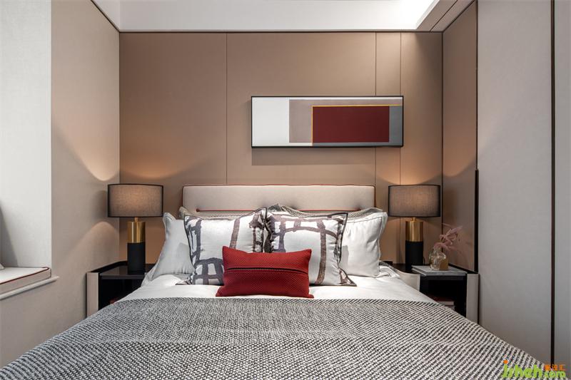 主臥以簡約的元素表現(xiàn)東方風(fēng)格的古樸大方,同時將奢華嵌入細(xì)節(jié)中,樣板房設(shè)計以素色的東方審美符號為主,采用柔和的中性色彩,給人優(yōu)雅溫馨、自然脫俗的感覺,將傳統(tǒng)風(fēng)韻與現(xiàn)代舒適感完美地融合在一起。