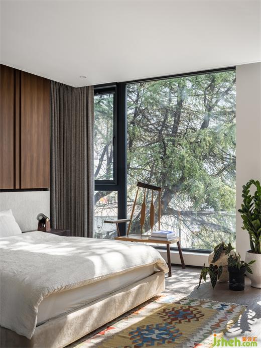 生活需要一些儀式感,尤其是一睜開眼就能看到的地方,更值得花些巧心思。別墅改造設(shè)計臥室整體為低飽和配色與自然的原木色搭配,沒有強沖擊力的顏色,低飽和度的色彩讓空間更具自然舒適感,長時間居住視覺不會產(chǎn)生疲勞感。