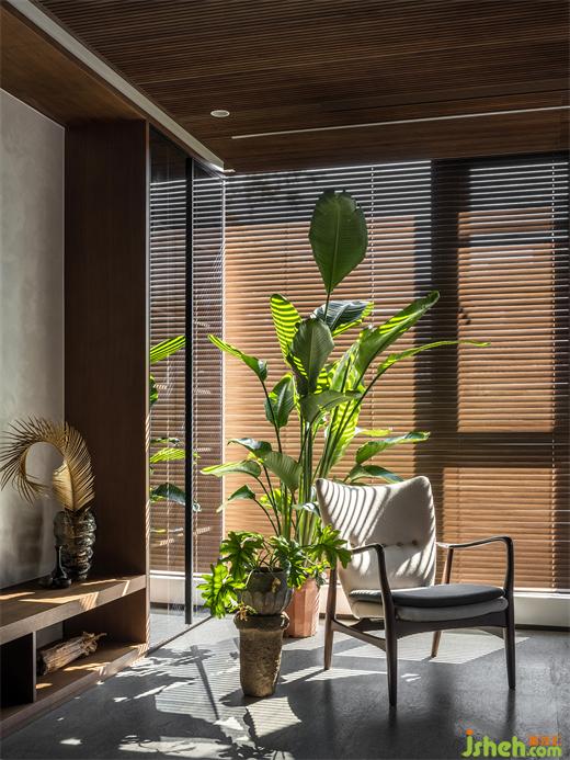 這是業(yè)主追求寧靜的獨立空間,整個空間一種看似「破舊」的高價美學(xué),更是一種生活態(tài)度。不主張空無一物的形式感,更注重質(zhì)樸、原生態(tài)的軟裝搭配,以原生態(tài)的質(zhì)感取代奢華,營造自然氛圍感。