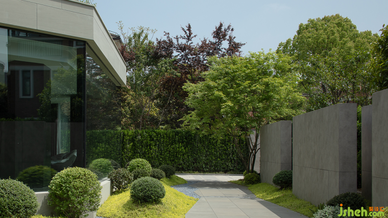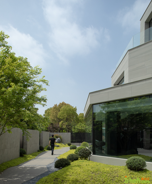 碧空之下,草木茂盛,錯(cuò)落有致的建筑以穩(wěn)固的姿態(tài)展現(xiàn)出大氣與自由。這便是湖山私宅予人的第一印象。