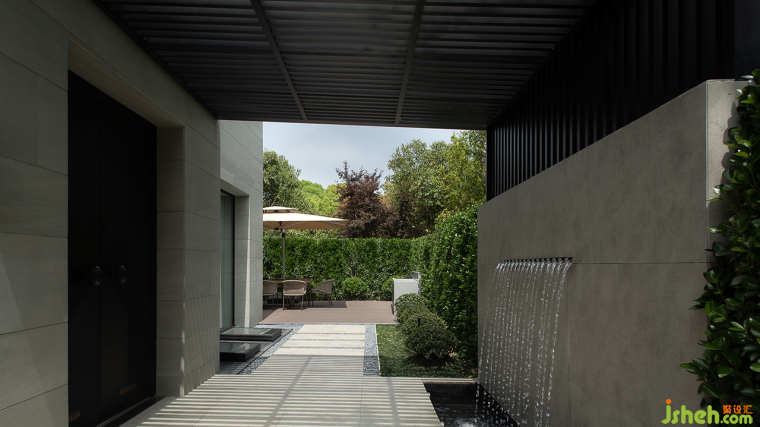 心隨步轉(zhuǎn),水影長廊,住宅的入口巧妙地設(shè)于側(cè)旁,既將絕美的景致引入室內(nèi),也為庭院增添了無窮的游玩趣味。