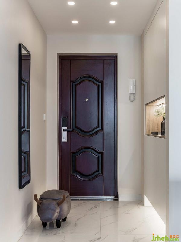 進門玄關利用廚房空間增加嵌入式鞋柜,用于收納換季和常用的鞋子。