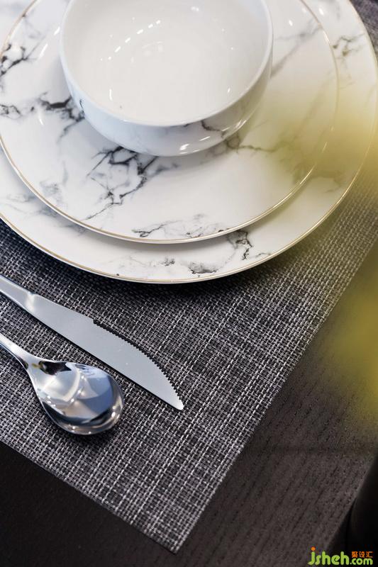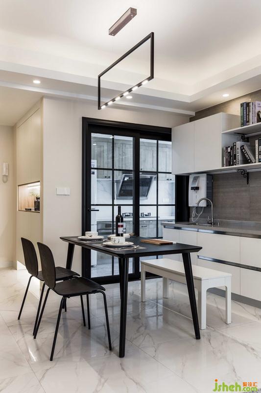經(jīng)典黑白搭配無處不在,黑白餐桌椅結(jié)合燈光給與人視覺上空間的延伸。