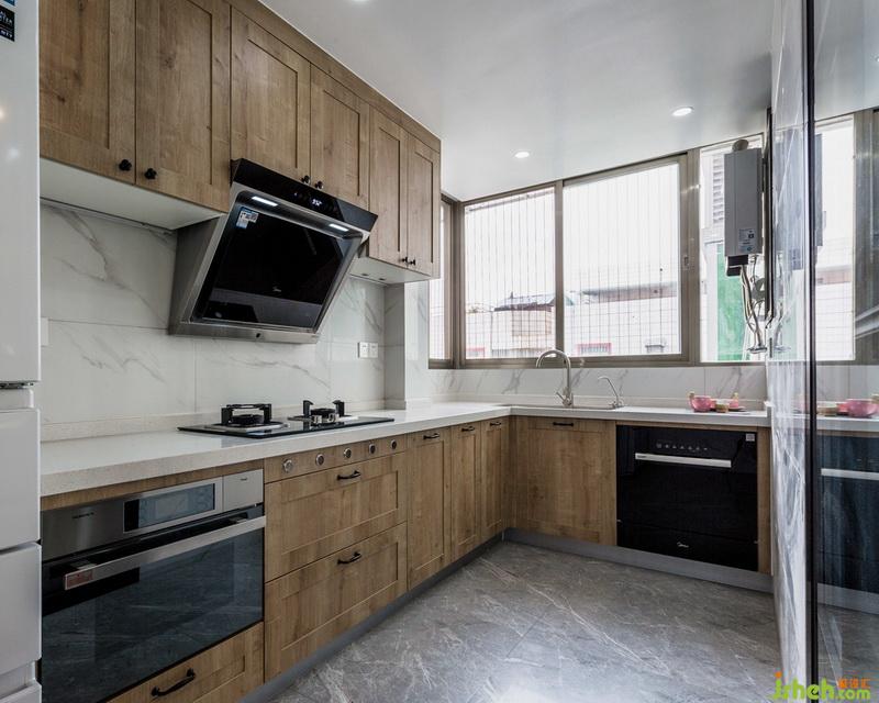 原廚房空間面積較小,室內(nèi)設計師現(xiàn)把生活陽臺融入廚房,擴大廚房的使用空間,L型的櫥柜是最適合小戶型的廚房設計,不管是長條形還是正方形,選擇設計L型的櫥柜,比一字型更多儲物空間和操作臺面,比U字型更多活動空間,動線的布局非常合理,占用的面積也比較小。