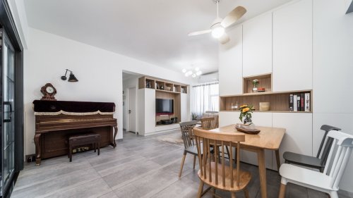 本案整體空間以淺杏色為基調(diào),打造舒適、自然、而不失雅致的的空間氛圍,讓設計回歸生活的本質(zhì)。室內(nèi)設計師把生活陽臺融入廚房,擴大廚房空間,增加電器高柜,閑暇時米米麻麻在餐廳西廚區(qū)給米米做最愛的甜點,粑粑坐在客廳沙發(fā)上看報紙,最好的幸福也不過如此。