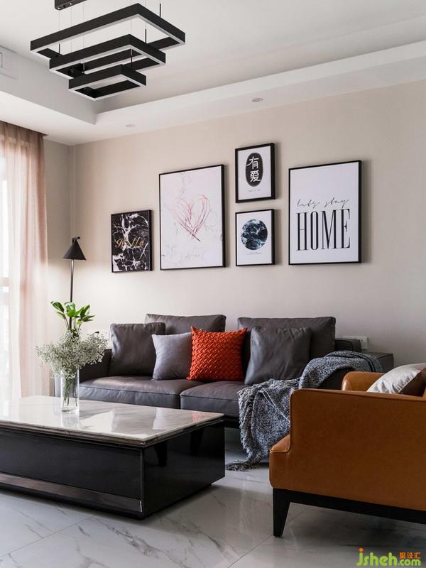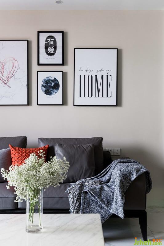 沙發(fā)背景墻選用最簡(jiǎn)單的方式點(diǎn)綴。